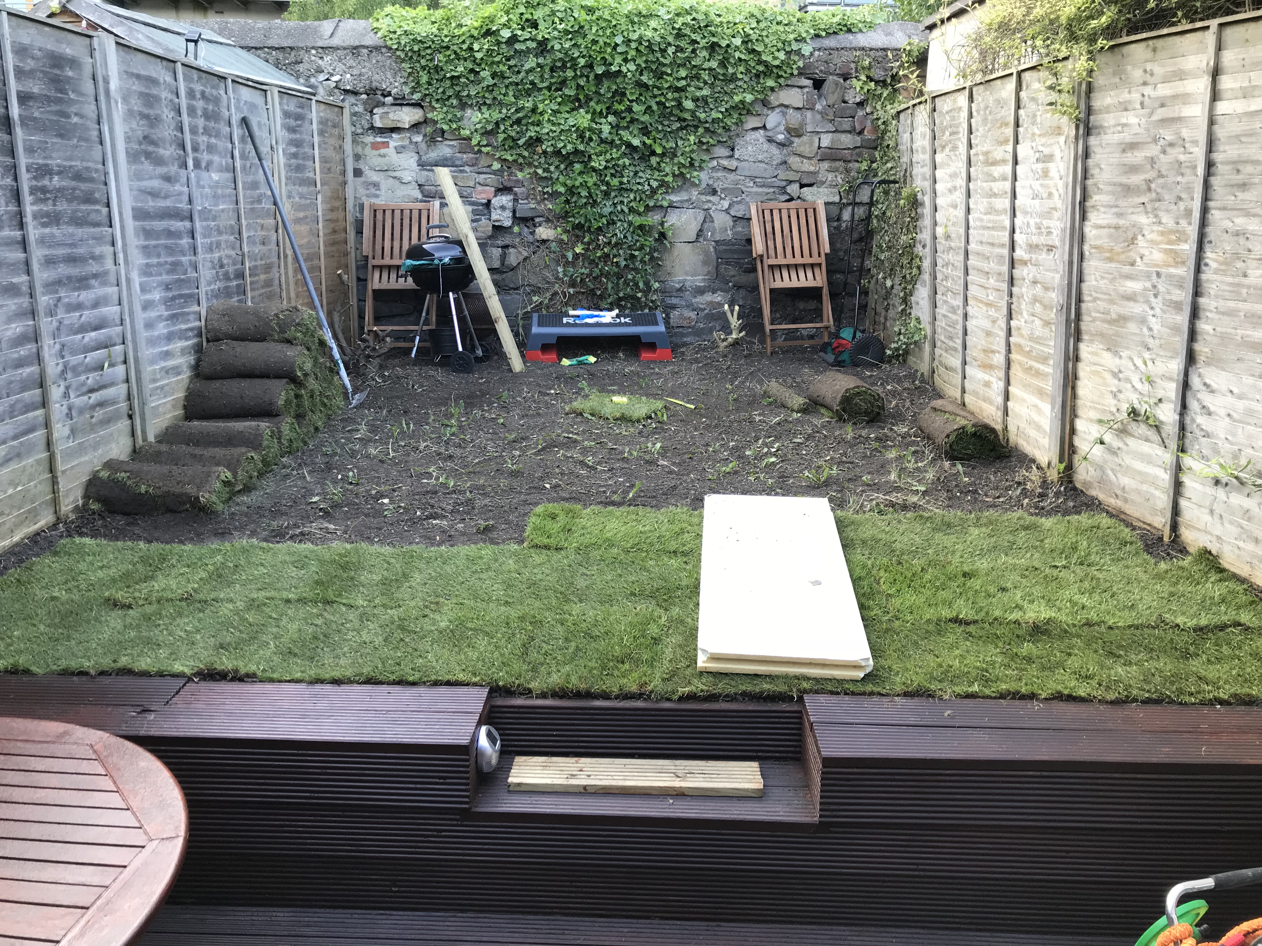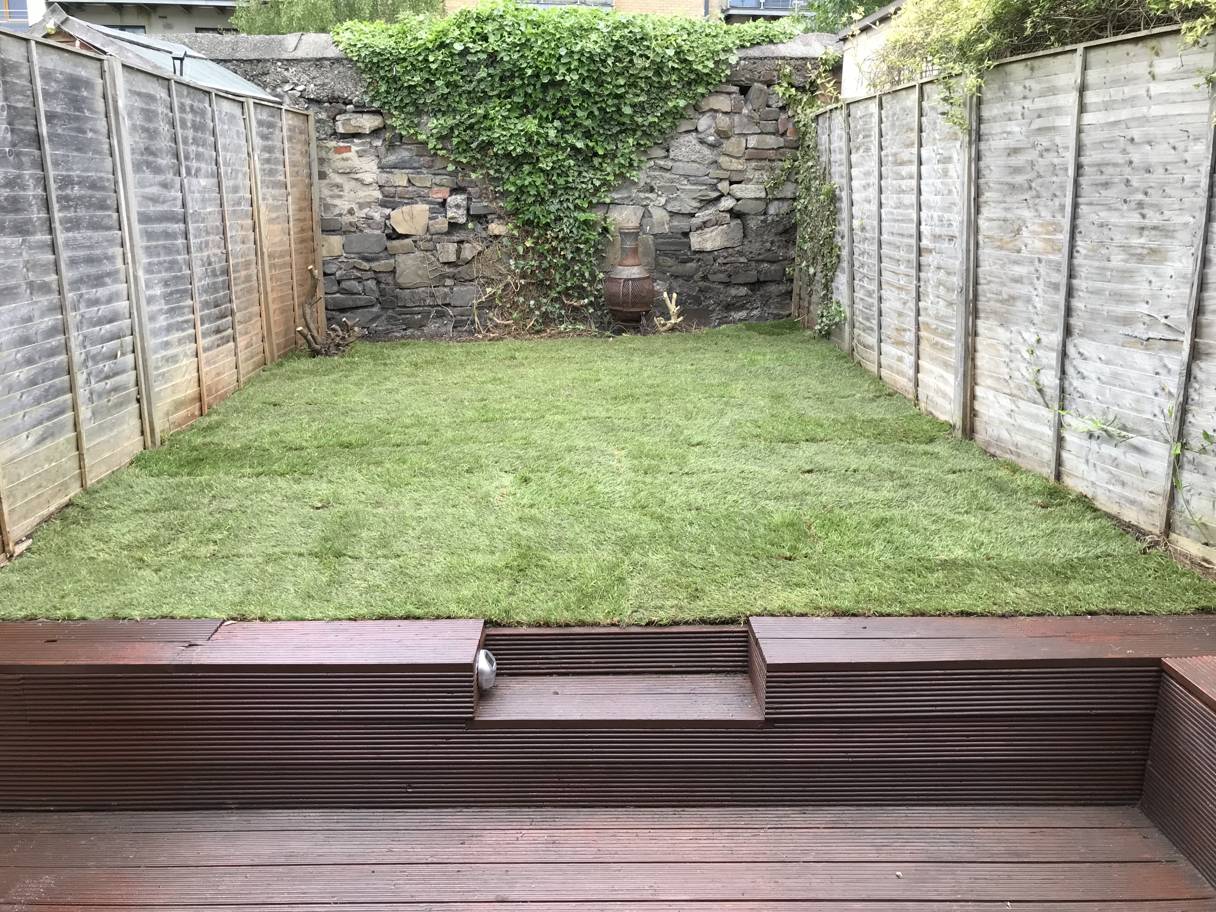 This tired and overgrown city garden was completely made over in 2 days using ready made real grass turf to save the homeowners weeks of waiting for a new seed lawn to come in….